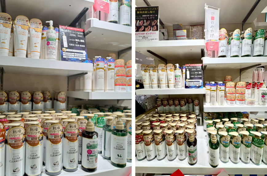 PLAZA店頭のとても目立つ場所に世田谷コスメを並べていただきました。